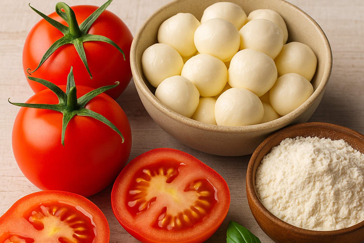 High-quality flour, peeled tomatoes, and mozzarella for restaurants and hotels.